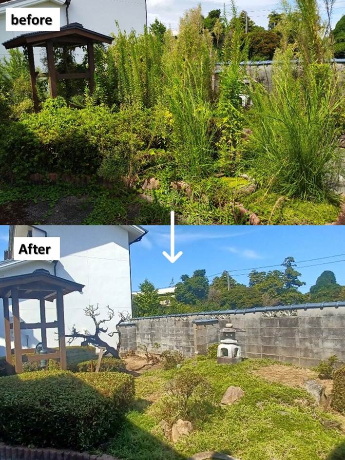 敷地内の草刈りおよび庭の手入れをお任せいただきました。