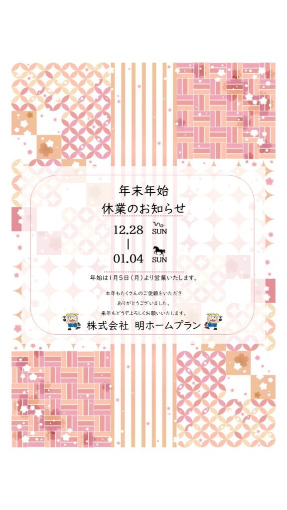 平素は格別のご愛顧を賜り厚く御礼申し上げます。 弊社では下記の期間、年末年始休業とさせていただきますのでご案内申し上げます。 休業期間: 12月28日(日)~ 1月4日(日) 期間中にお寄せいただいたお問い合わせやご依頼に関しましては、1月5日(月)よ... -